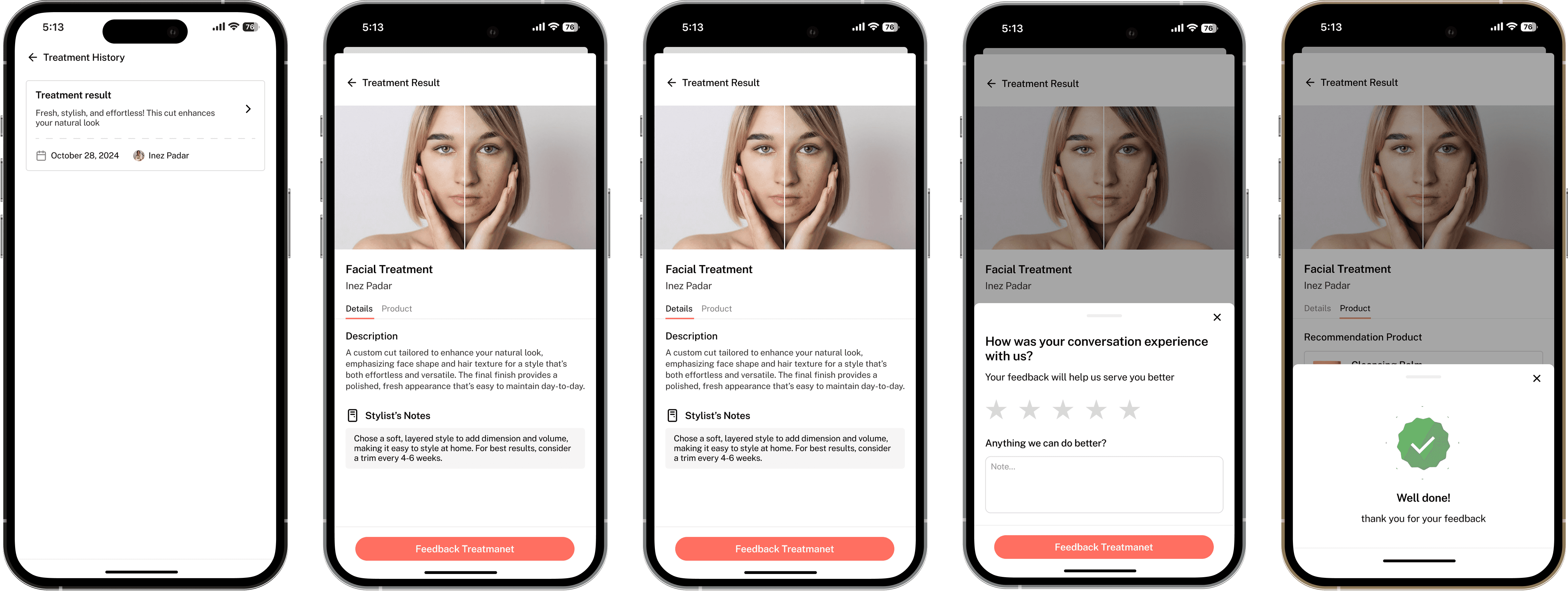 Get a complete overview of your beauty treatment—from the services received and products used to the stylist involved and personal notes. This section helps you track your preferences, results, and history, making your next appointment even more personalized and seamless.